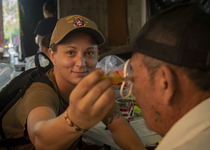 Hospital Corpsman 2nd Class Brooke Proverb, from Macomb, helps identify a patient’s correct prescription for glasses at one of two medical sites. The hospital ship USNS Comfort is on an 11-week medical support mission to Central and South America as part of U.S. Southern Command’s Enduring Promise initiative. The deployment reflects the United States’ enduring promise of friendship, partnership and solidarity with the Americas.
