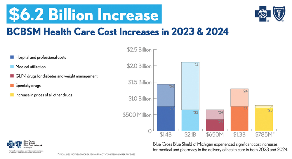 From 2022 to 2023, the last year for which data is available, drug prices increased 35% on some of the same drugs. BCBSM, she said, experienced a $900 million increase in pharmacy costs year-over-year between 2023 and 2024.