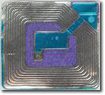A Radio Frequency Identification tag (RFID) tag is a tiny chip and an equally tiny antenna that can transmit radio waves (the RF part) to a device that can read and understand them (the ID part).